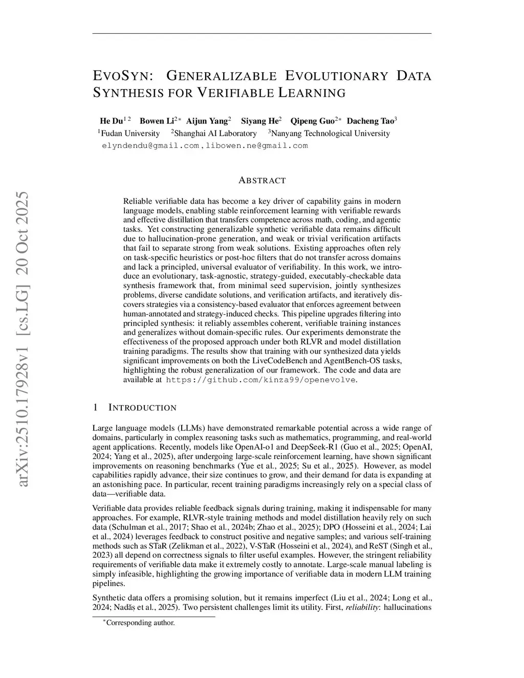 EvoSyn: Generalizable Evolutionary Data Synthesis for Verifiable Learning
