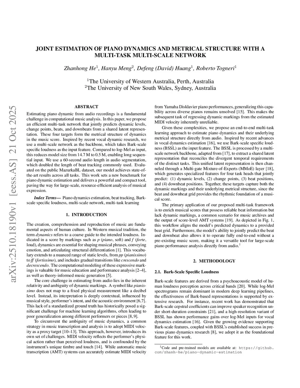 Joint Estimation of Piano Dynamics and Metrical Structure with a Multi-task Multi-Scale Network