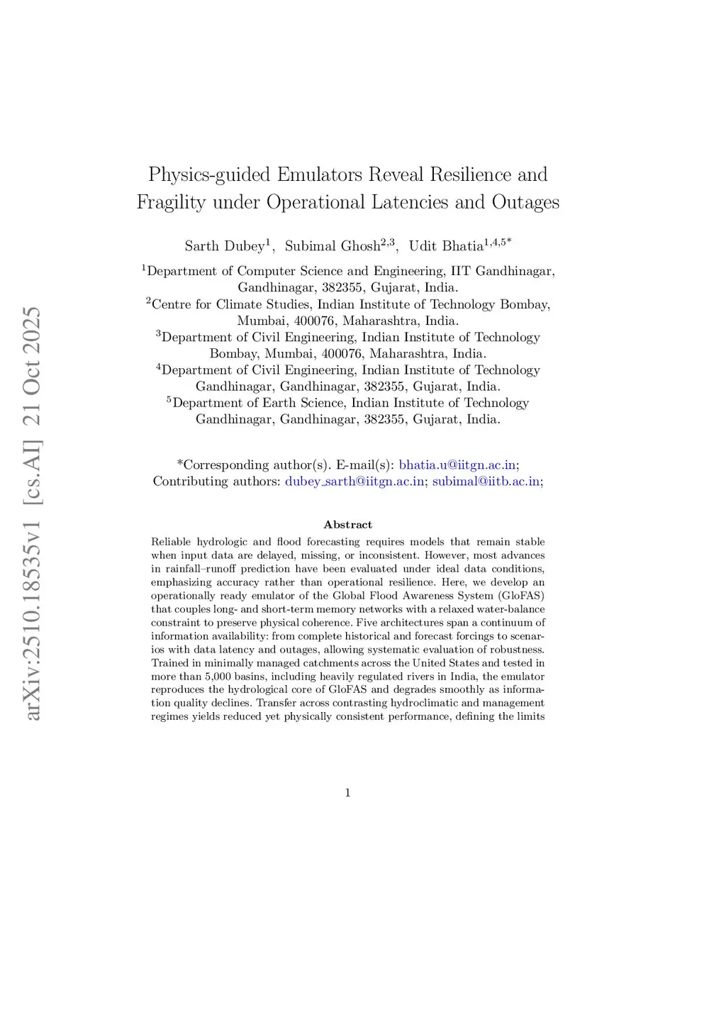 Physics-guided Emulators Reveal Resilience and Fragility under Operational Latencies and Outages