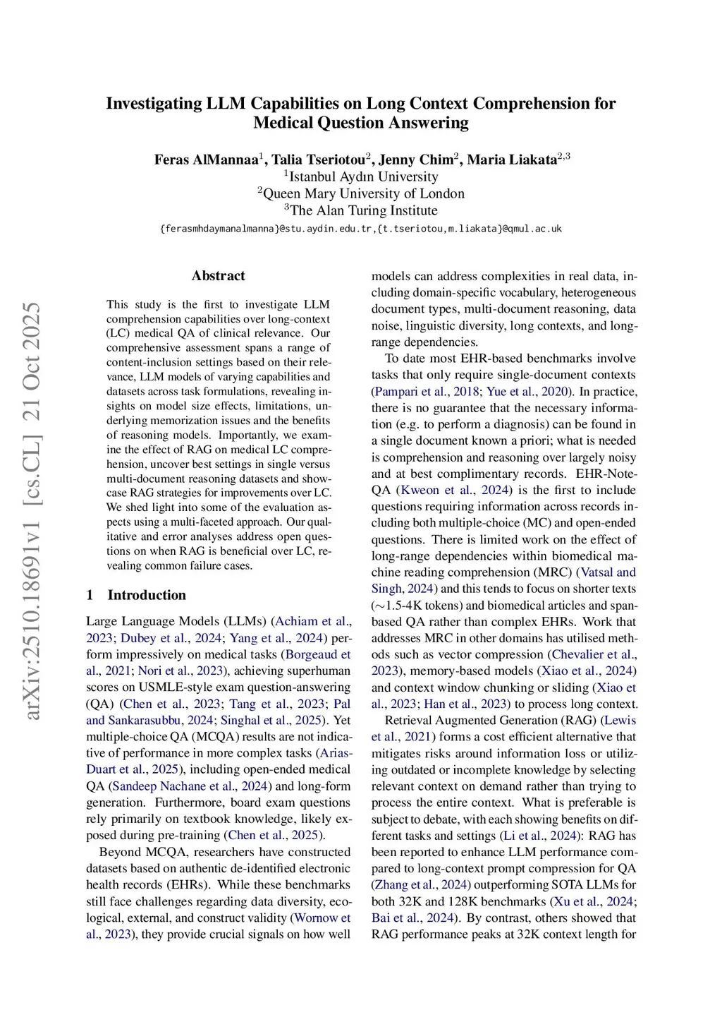 Investigating LLM Capabilities on Long Context Comprehension for Medical Question Answering