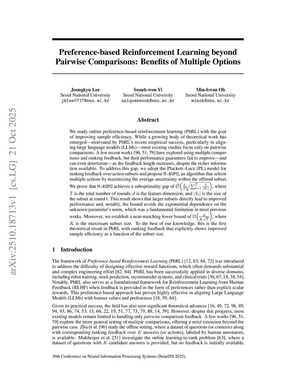 Preference-based Reinforcement Learning beyond Pairwise Comparisons: Benefits of Multiple Options