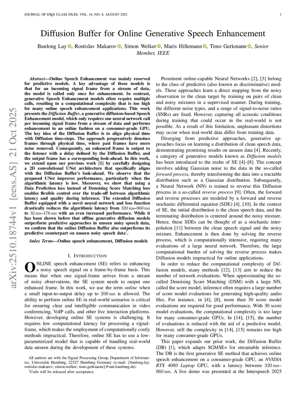 Online Speech Enhancement was mainly reserved for predictive models. A key advantage of these models is that for an incoming signal frame from a stream of data, the model is called only once for enhancement. In contrast, generative Speech Enhancement models often require multiple calls, resulting in a computational complexity that is too high for many online speech enhancement applications. This work presents the Diffusion Buffer, a generative diffusion-based Speech Enhancement model which only requires one neural network call per incoming signal frame from a stream of data and performs enhancement in an online fashion on a consumer-grade GPU. The key idea of the Diffusion Buffer is to align physical time with Diffusion time-steps. The approach progressively denoises frames through physical time, where past frames have more noise removed. Consequently, an enhanced frame is output to the listener with a delay defined by the Diffusion Buffer, and the output frame has a corresponding look-ahead. In this work, we extend upon our previous work by carefully designing a 2D convolutional UNet architecture that specifically aligns with the Diffusion Buffer's look-ahead. We observe that the proposed UNet improves performance, particularly when the algorithmic latency is low. Moreover, we show that using a Data Prediction loss instead of Denoising Score Matching loss enables flexible control over the trade-off between algorithmic latency and quality during inference. The extended Diffusion Buffer equipped with a novel NN and loss function drastically reduces the algorithmic latency from 320 - 960 ms to 32 - 176 ms with an even increased performance. While it has been shown before that offline generative diffusion models outperform predictive approaches in unseen noisy speech data, we confirm that the online Diffusion Buffer also outperforms its predictive counterpart on unseen noisy speech data.