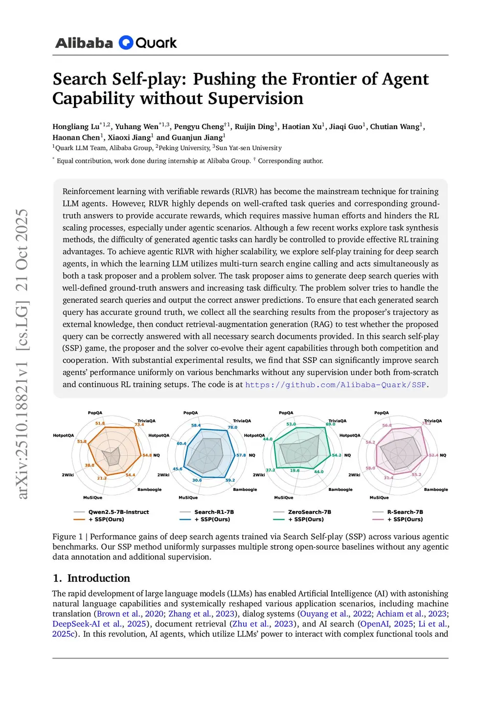 Search Self-play: Pushing the Frontier of Agent Capability without Supervision