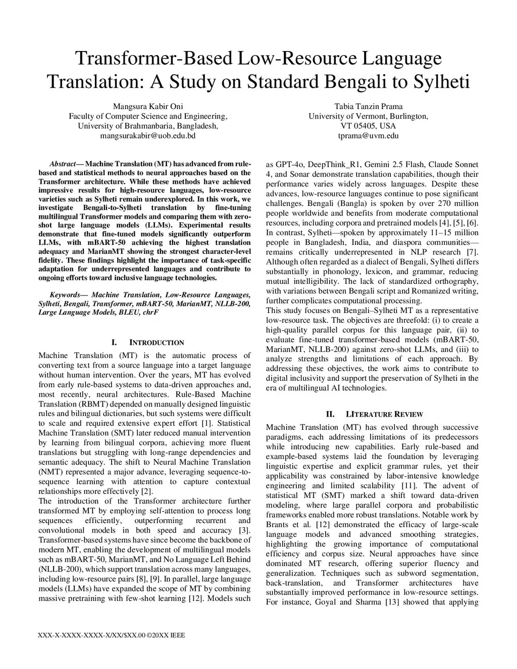 Machine Translation (MT) has advanced from rule-based and statistical methods to neural approaches based on the Transformer architecture. While these methods have achieved impressive results for high-resource languages, low-resource varieties such as Sylheti remain underexplored. In this work, we investigate Bengali-to-Sylheti translation by fine-tuning multilingual Transformer models and comparing them with zero-shot large language models (LLMs). Experimental results demonstrate that fine-tuned models significantly outperform LLMs, with mBART-50 achieving the highest translation adequacy and MarianMT showing the strongest character-level fidelity. These findings highlight the importance of task-specific adaptation for underrepresented languages and contribute to ongoing efforts toward inclusive language technologies.