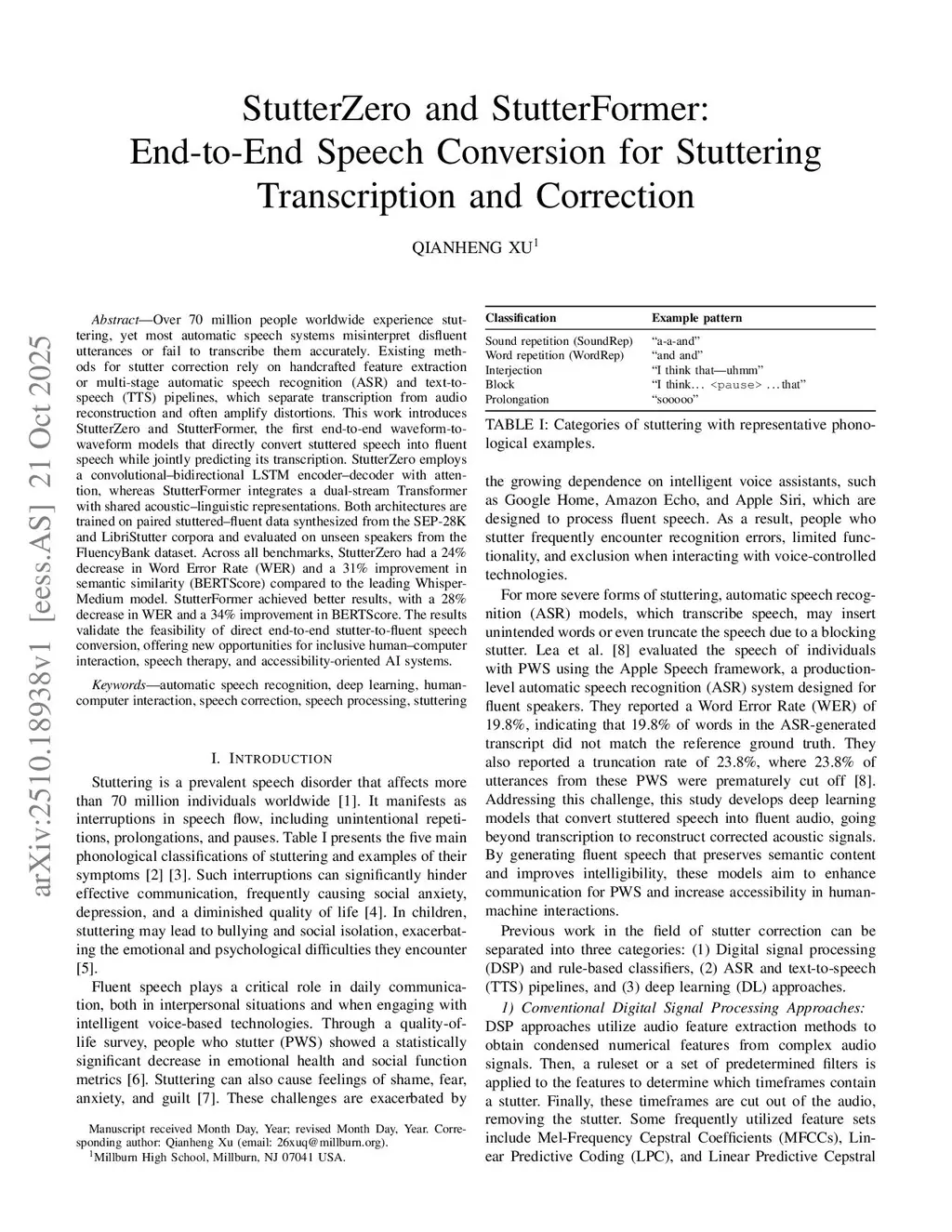 StutterZero and StutterFormer: End-to-End Speech Conversion for Stuttering Transcription and Correction