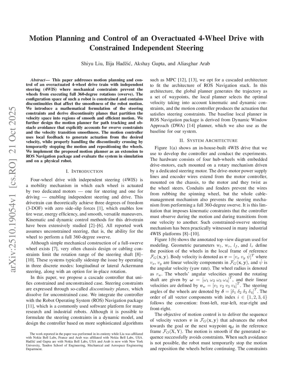 Motion Planning and Control of an Overactuated 4-Wheel Drive with Constrained Independent Steering