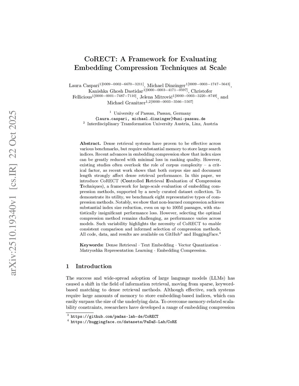 CoRECT: A Framework for Evaluating Embedding Compression Techniques at Scale