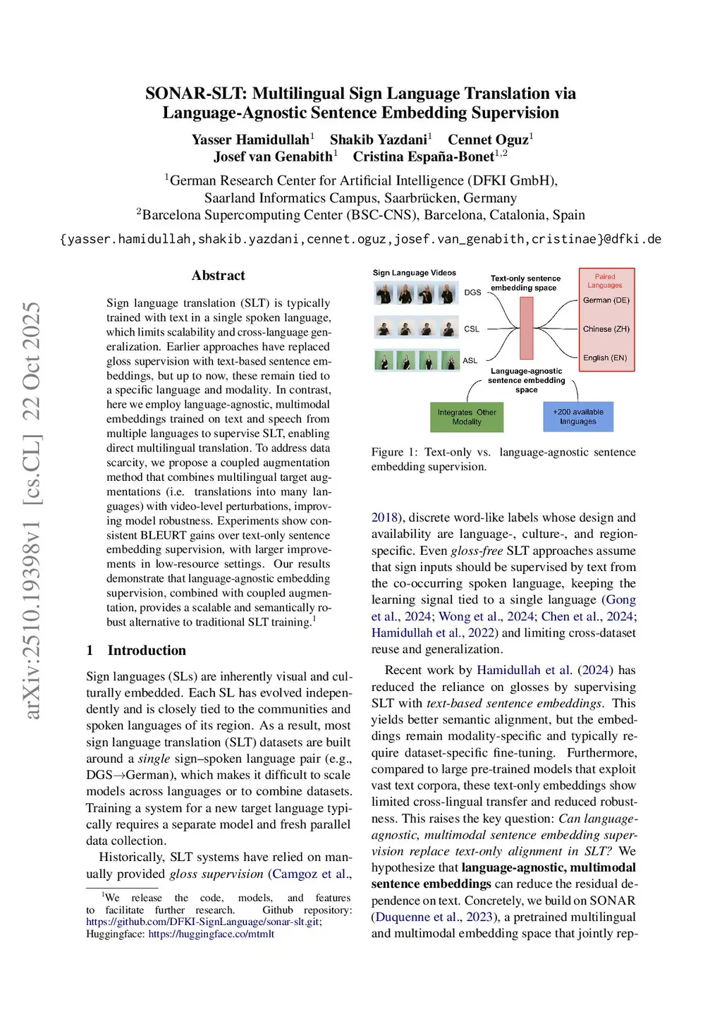 SONAR-SLT: Multilingual Sign Language Translation via Language-Agnostic Sentence Embedding Supervision