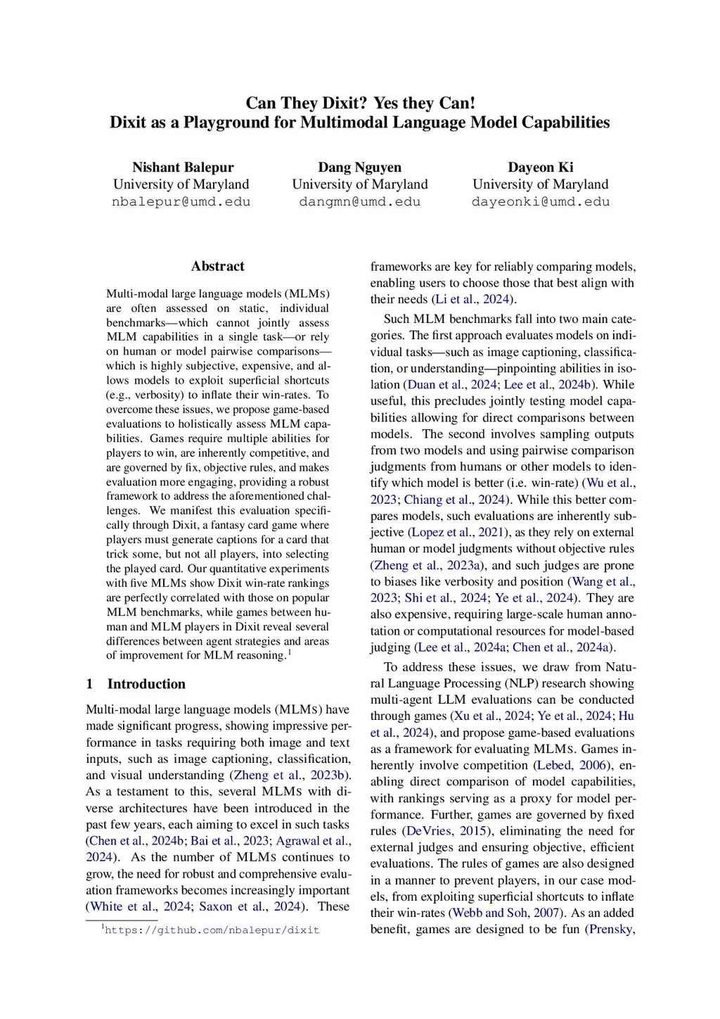 Can They Dixit? Yes they Can! Dixit as a Playground for Multimodal Language Model Capabilities