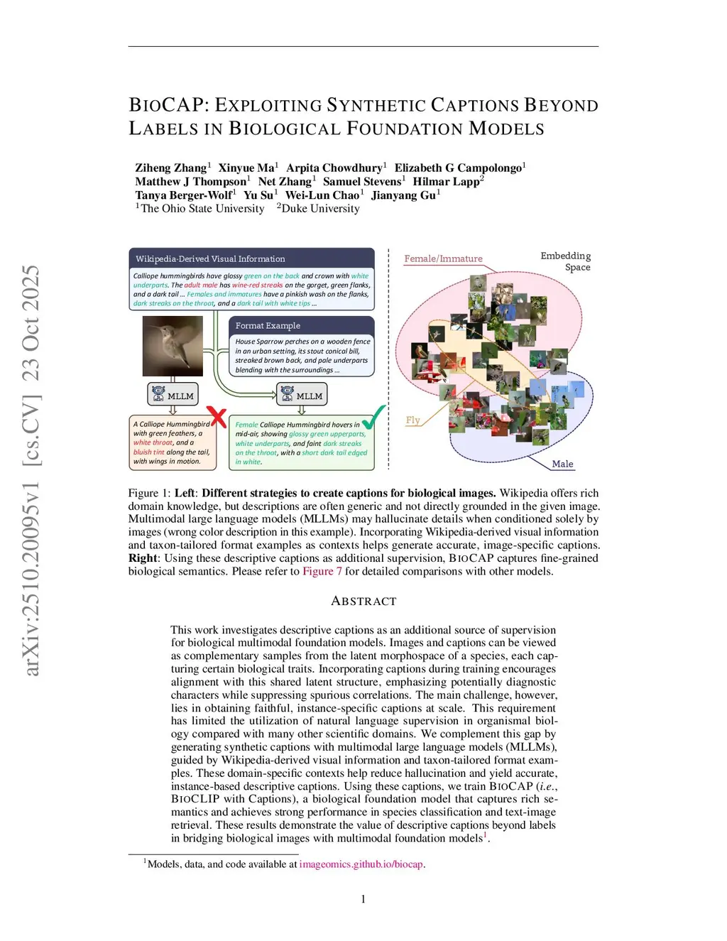 BioCAP: Exploiting Synthetic Captions Beyond Labels in Biological Foundation Models