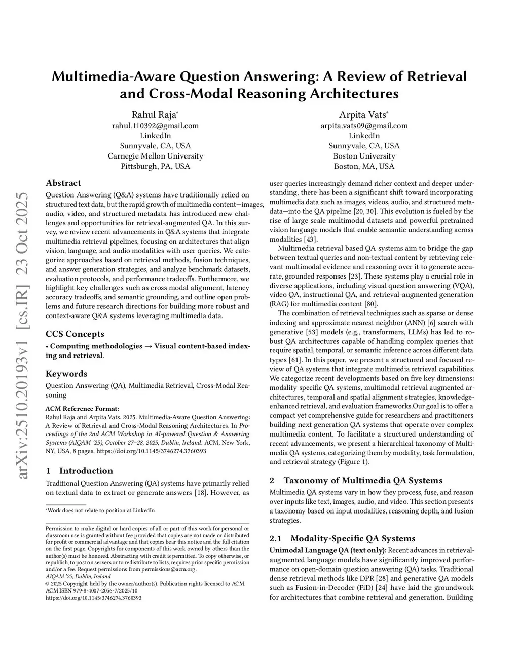 Multimedia-Aware Question Answering: A Review of Retrieval and Cross-Modal Reasoning Architectures
