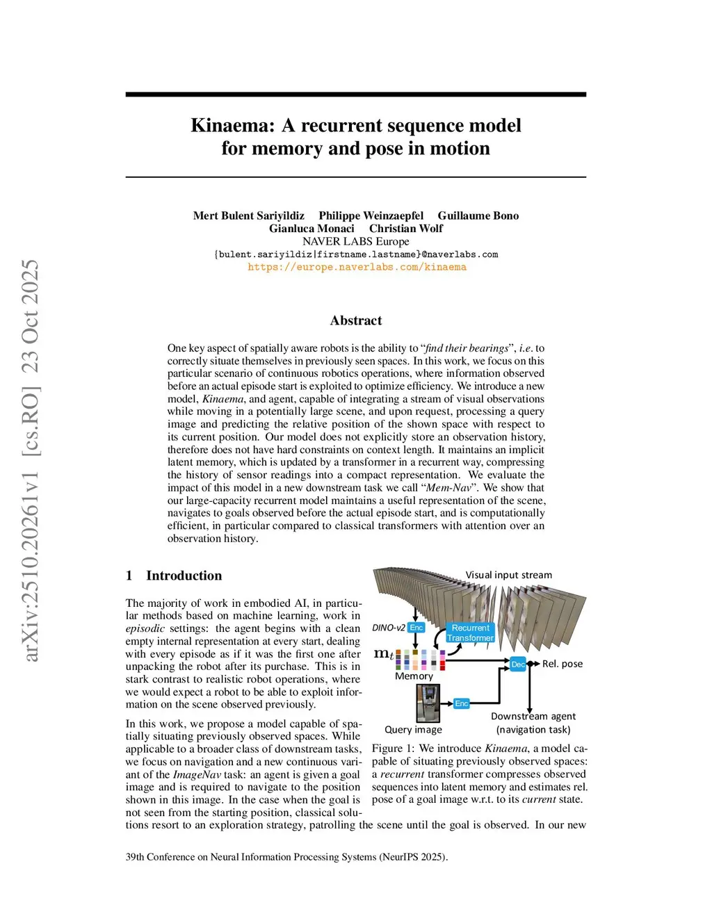 Kinaema: a recurrent sequence model for memory and pose in motion