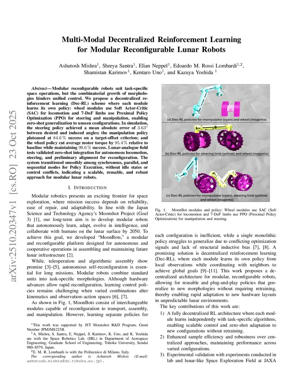 Multi-Modal Decentralized Reinforcement Learning for Modular Reconfigurable Lunar Robots
