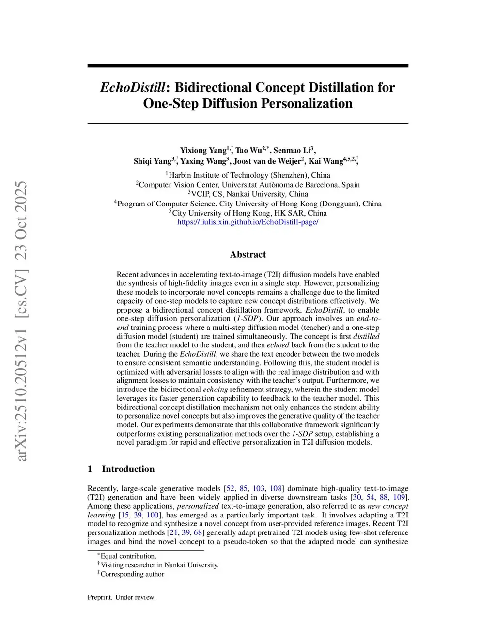 EchoDistill: Bidirectional Concept Distillation for One-Step Diffusion Personalization