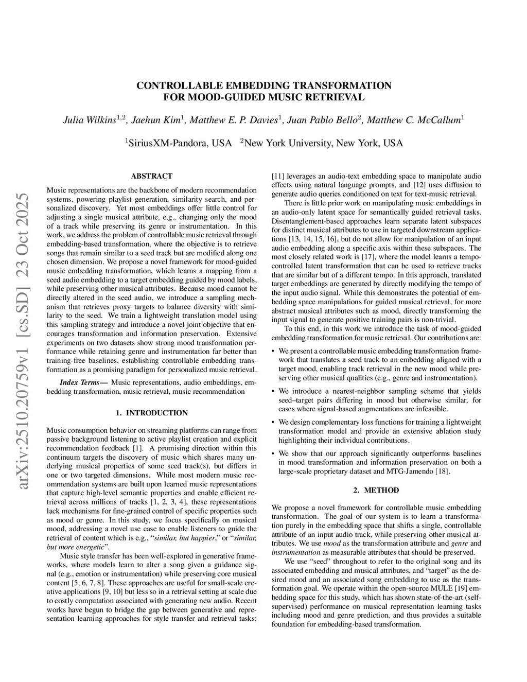 Controllable Embedding Transformation for Mood-Guided Music Retrieval
