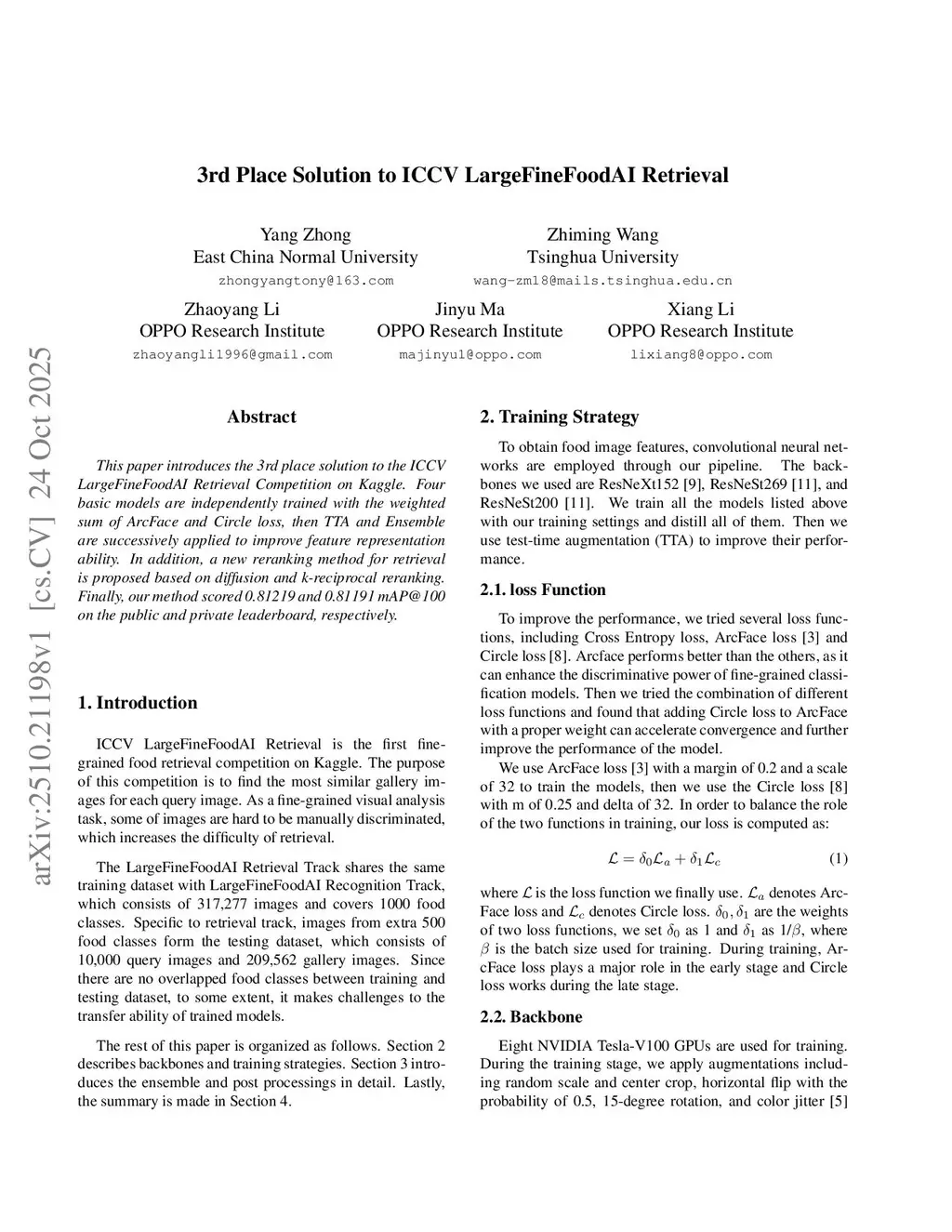 3rd Place Solution to ICCV LargeFineFoodAI Retrieval