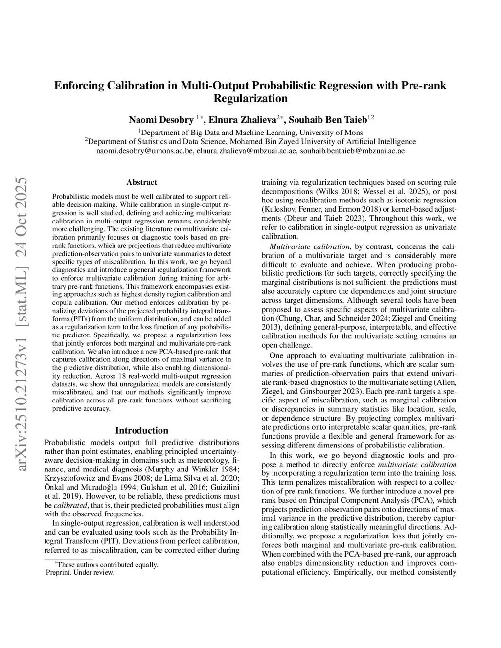 Enforcing Calibration in Multi-Output Probabilistic Regression with Pre-rank Regularization