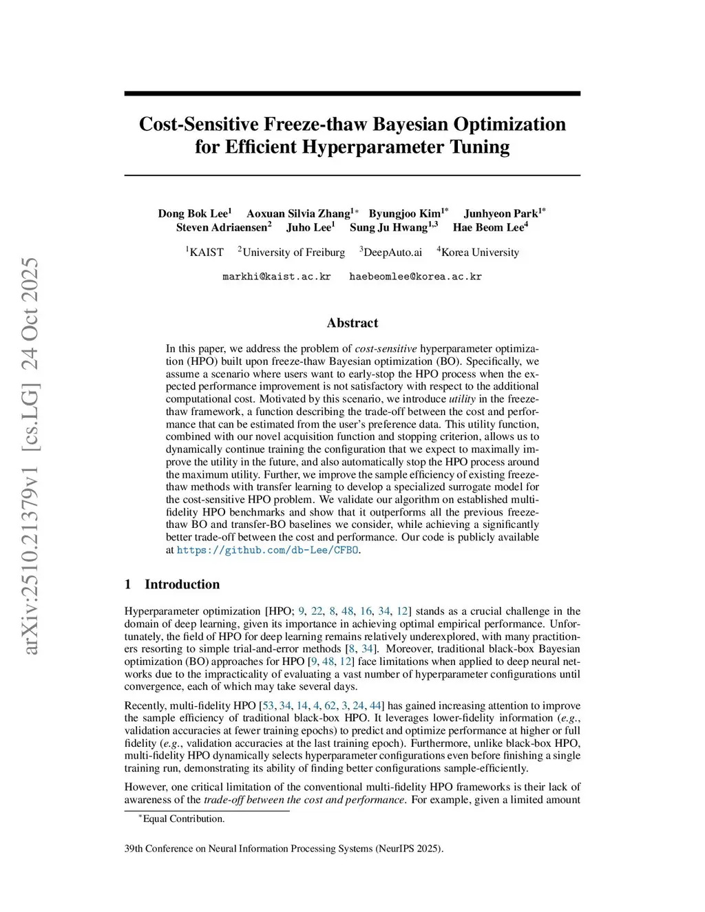 Cost-Sensitive Freeze-thaw Bayesian Optimization for Efficient Hyperparameter Tuning