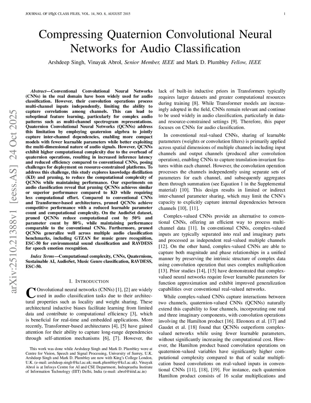 Compressing Quaternion Convolutional Neural Networks for Audio Classification