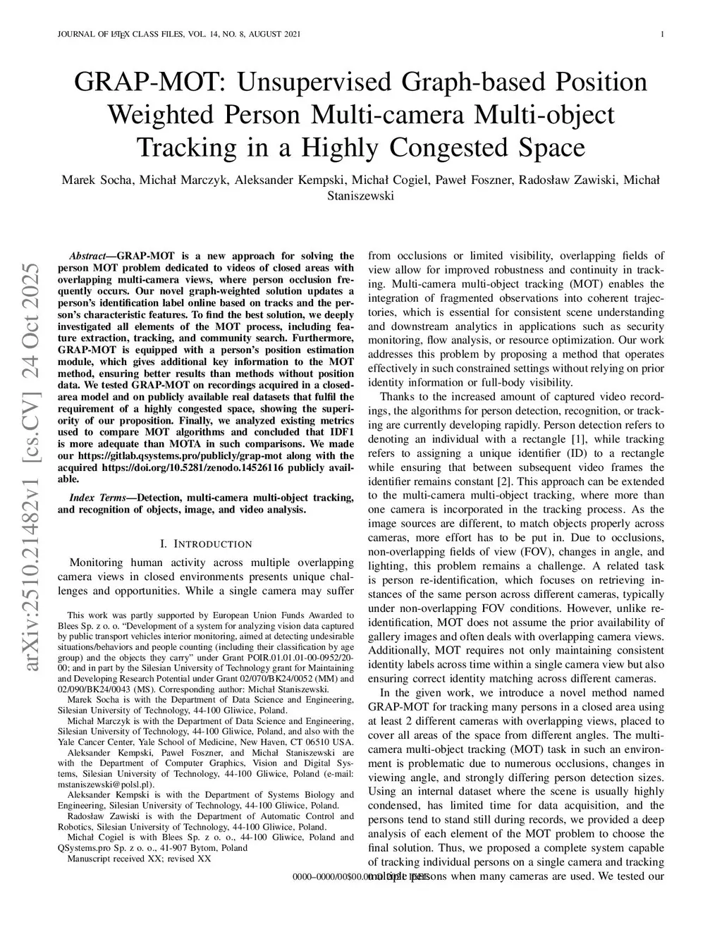 GRAP-MOT: Unsupervised Graph-based Position Weighted Person Multi-camera Multi-object Tracking in a Highly Congested Space