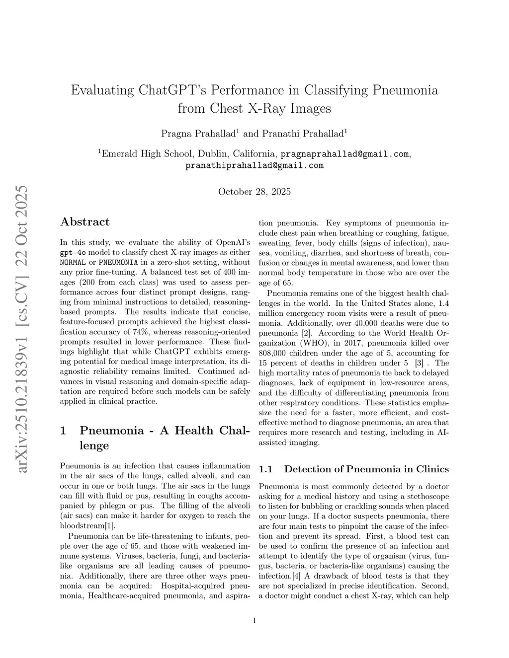 Evaluating ChatGPT's Performance in Classifying Pneumonia from Chest X-Ray Images