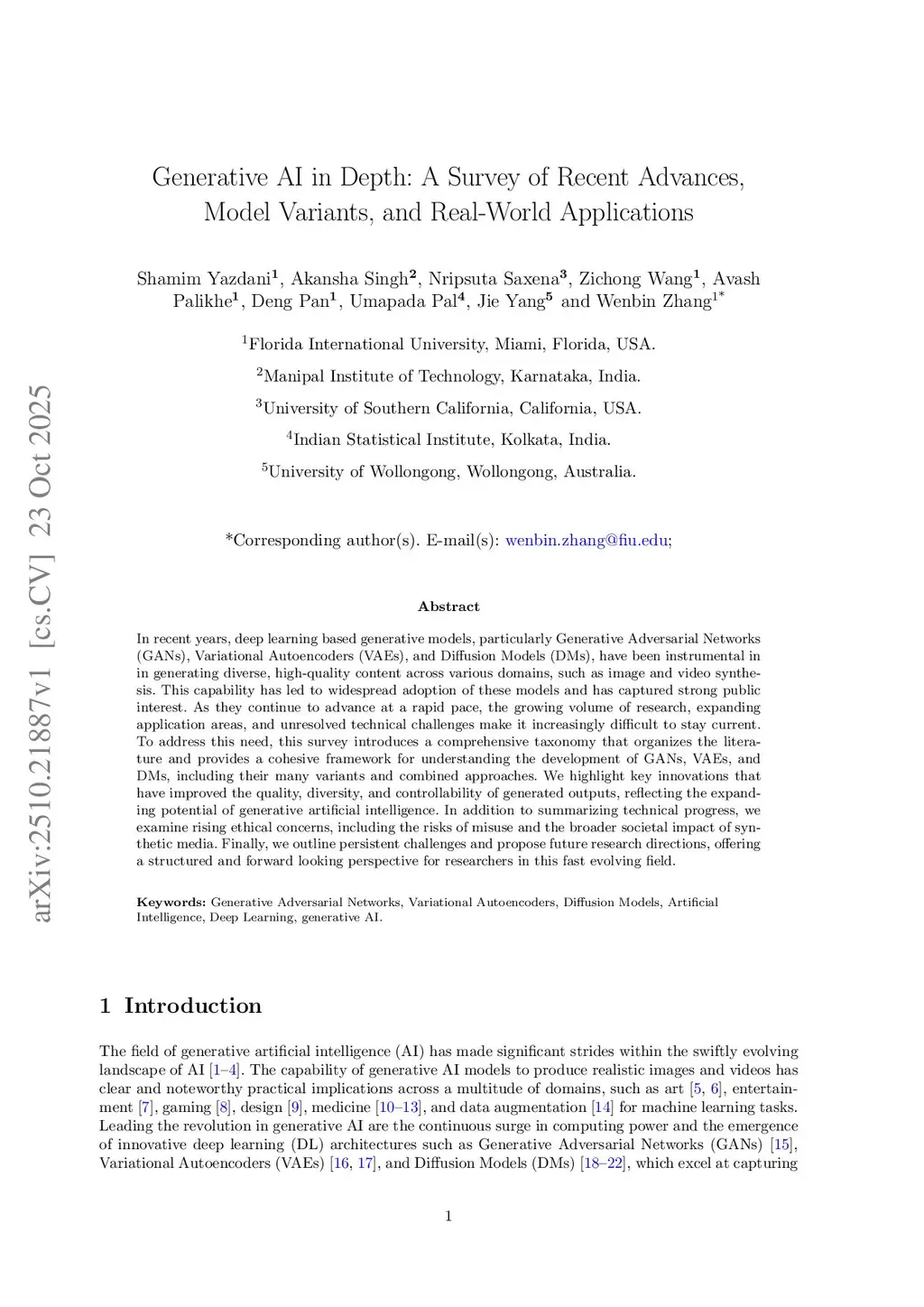 Generative AI in Depth: A Survey of Recent Advances, Model Variants, and Real-World Applications