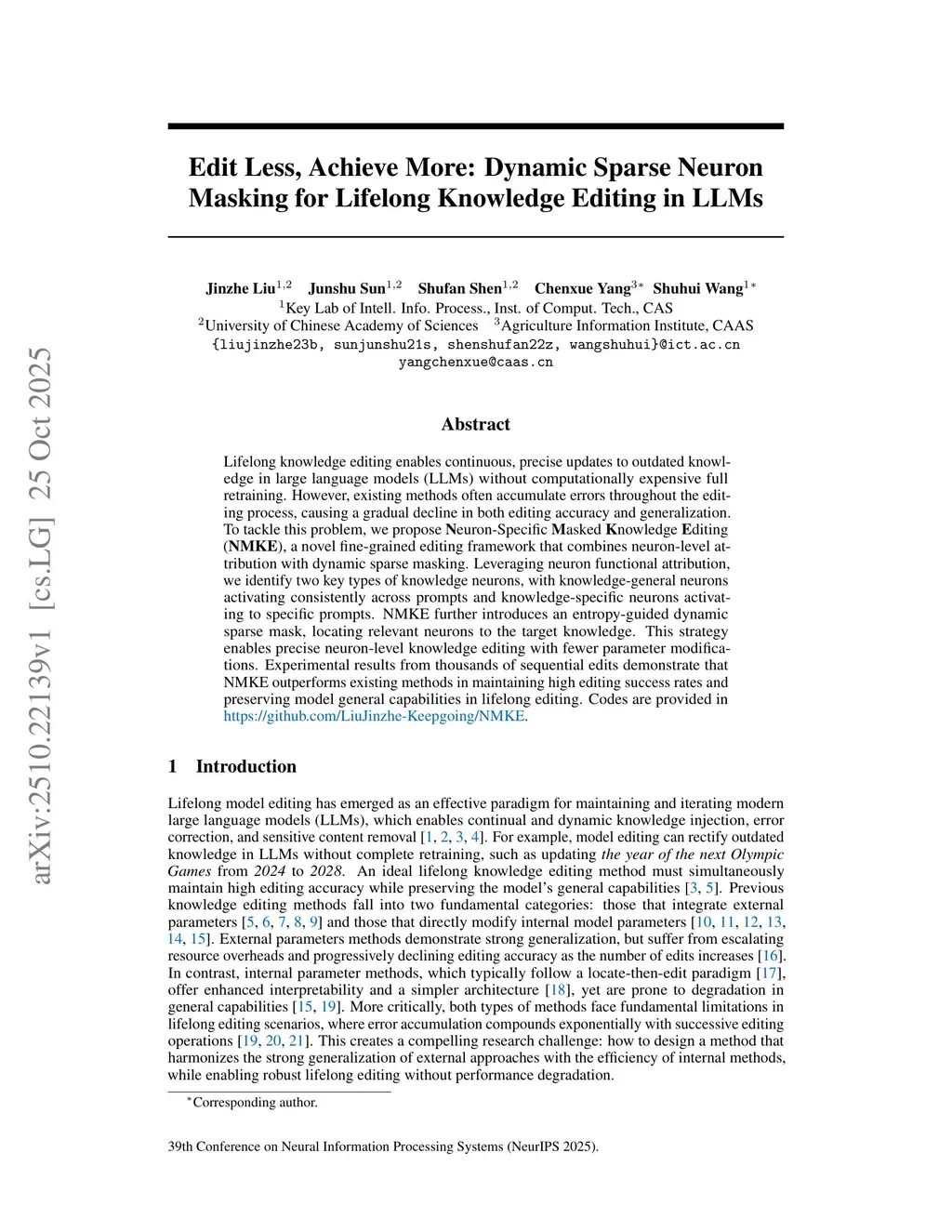 Edit Less, Achieve More: Dynamic Sparse Neuron Masking for Lifelong Knowledge Editing in LLMs