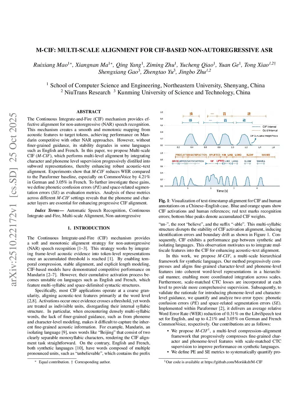 The Continuous Integrate-and-Fire (CIF) mechanism provides effective alignment for non-autoregressive (NAR) speech recognition. This mechanism creates a smooth and monotonic mapping from acoustic features to target tokens, achieving performance on Mandarin competitive with other NAR approaches. However, without finer-grained guidance, its stability degrades in some languages such as English and French. In this paper, we propose Multi-scale CIF (M-CIF), which performs multi-level alignment by integrating character and phoneme level supervision progressively distilled into subword representations, thereby enhancing robust acoustic-text alignment. Experiments show that M-CIF reduces WER compared to the Paraformer baseline, especially on CommonVoice by 4.21% in German and 3.05% in French. To further investigate these gains, we define phonetic confusion errors (PE) and space-related segmentation errors (SE) as evaluation metrics. Analysis of these metrics across different M-CIF settings reveals that the phoneme and character layers are essential for enhancing progressive CIF alignment.
