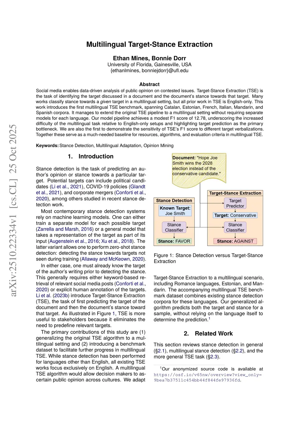 Multilingual Target-Stance Extraction
