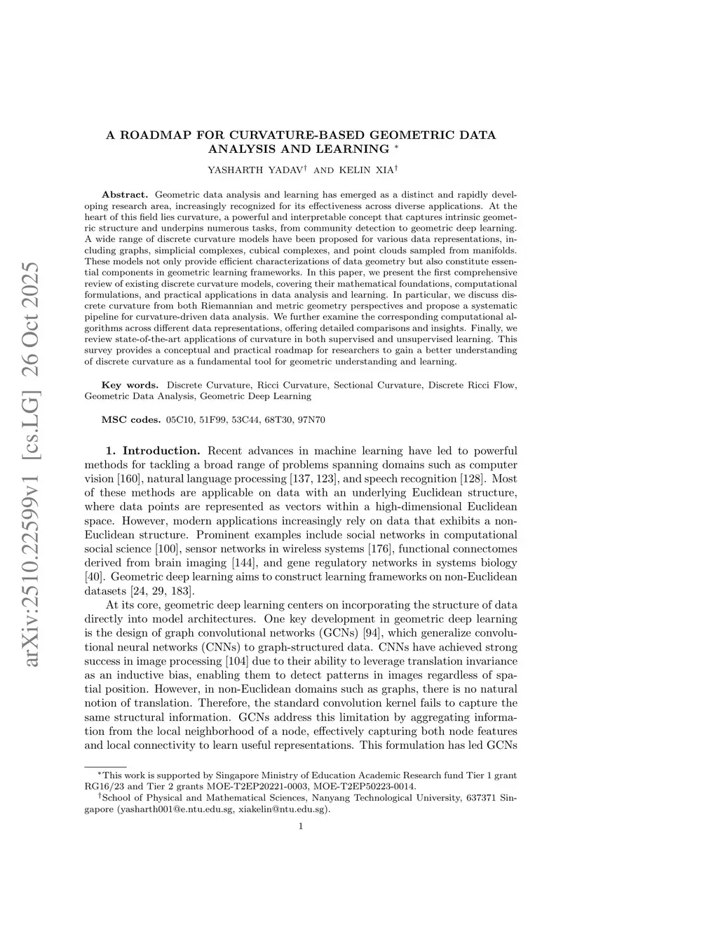 Geometric data analysis and learning has emerged as a distinct and rapidly developing research area, increasingly recognized for its effectiveness across diverse applications. At the heart of this field lies curvature, a powerful and interpretable concept that captures intrinsic geometric structure and underpins numerous tasks, from community detection to geometric deep learning. A wide range of discrete curvature models have been proposed for various data representations, including graphs, simplicial complexes, cubical complexes, and point clouds sampled from manifolds. These models not only provide efficient characterizations of data geometry but also constitute essential components in geometric learning frameworks. In this paper, we present the first comprehensive review of existing discrete curvature models, covering their mathematical foundations, computational formulations, and practical applications in data analysis and learning. In particular, we discuss discrete curvature from both Riemannian and metric geometry perspectives and propose a systematic pipeline for curvature-driven data analysis. We further examine the corresponding computational algorithms across different data representations, offering detailed comparisons and insights. Finally, we review state-of-the-art applications of curvature in both supervised and unsupervised learning. This survey provides a conceptual and practical roadmap for researchers to gain a better understanding of discrete curvature as a fundamental tool for geometric understanding and learning.