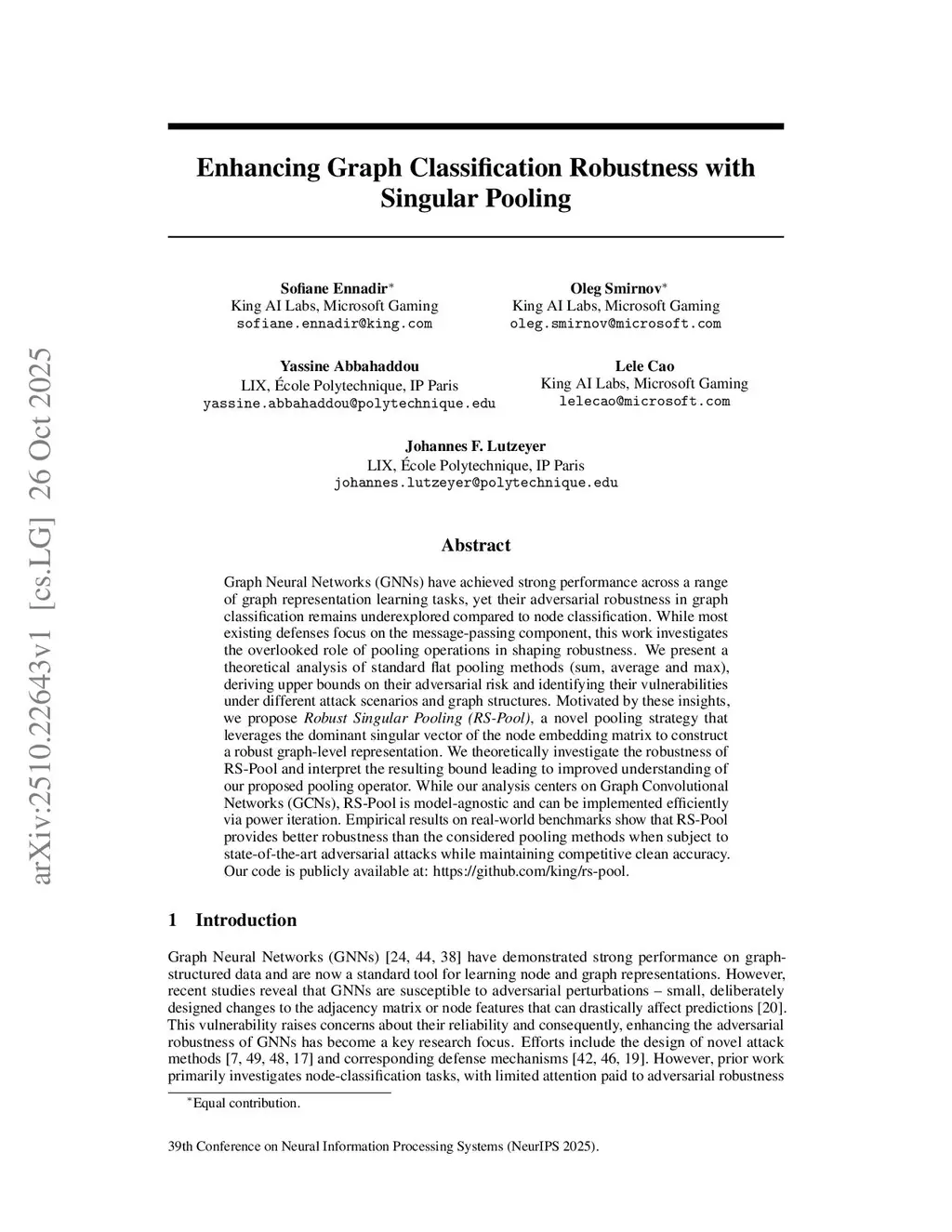Enhancing Graph Classification Robustness with Singular Pooling