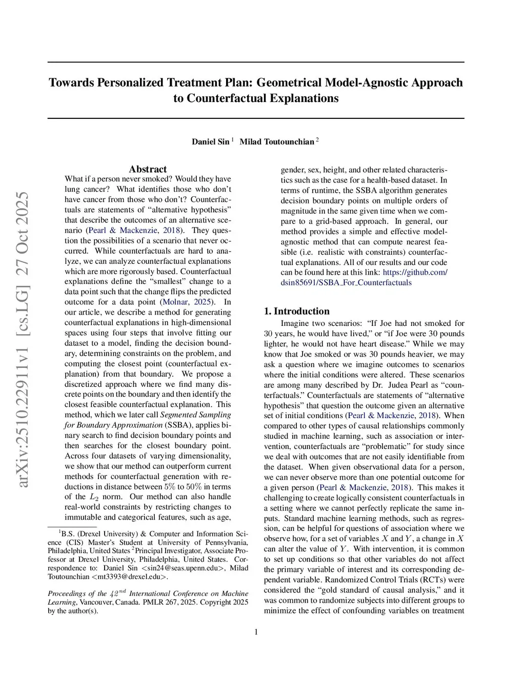 Towards Personalized Treatment Plan: Geometrical Model-Agnostic Approach to Counterfactual Explanations