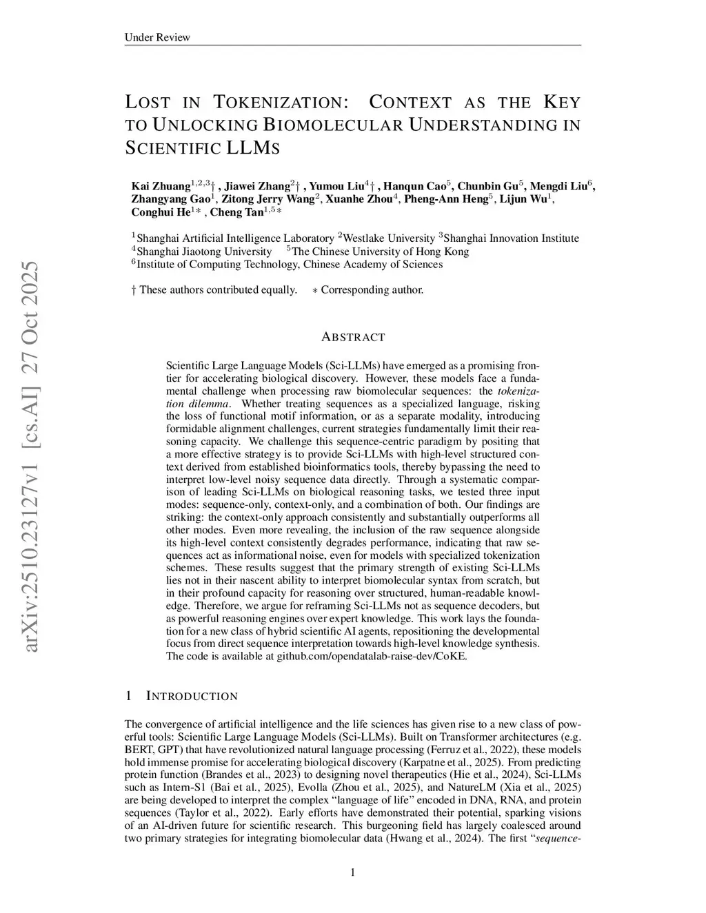 Lost in Tokenization: Context as the Key to Unlocking Biomolecular Understanding in Scientific LLMs