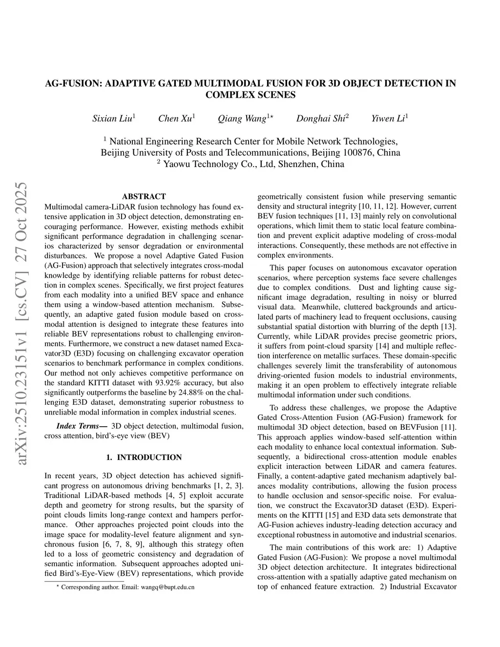 AG-Fusion: adaptive gated multimodal fusion for 3d object detection in complex scenes