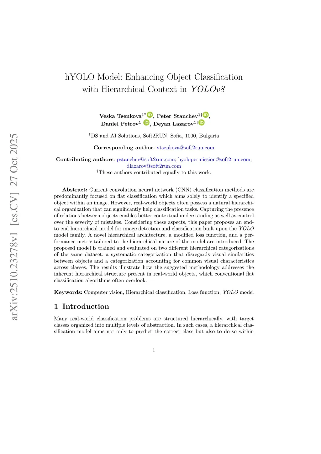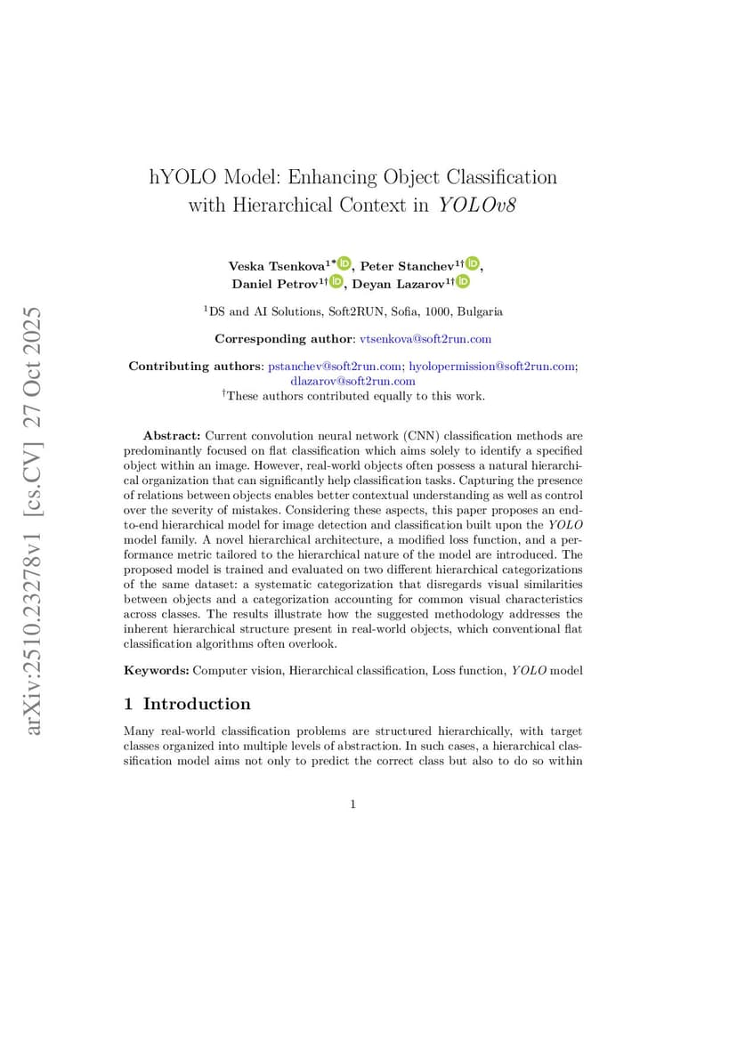 hYOLO Model: Enhancing Object Classification with Hierarchical Context in YOLOv8