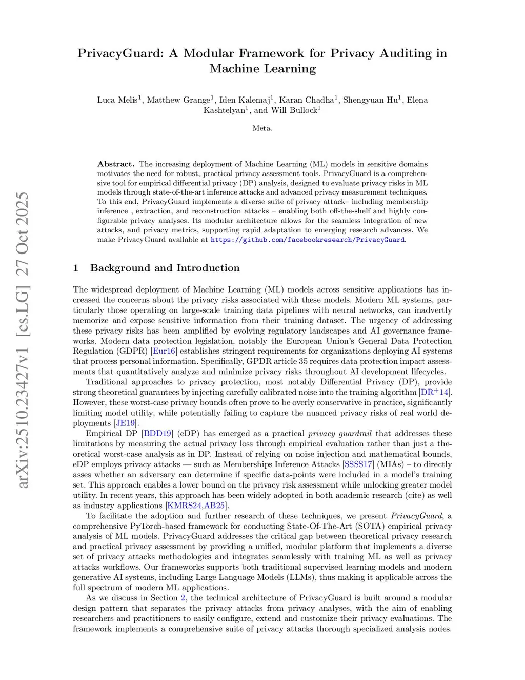 The increasing deployment of Machine Learning (ML) models in sensitive domains motivates the need for robust, practical privacy assessment tools. PrivacyGuard is a comprehensive tool for empirical differential privacy (DP) analysis, designed to evaluate privacy risks in ML models through state-of-the-art inference attacks and advanced privacy measurement techniques. To this end, PrivacyGuard implements a diverse suite of privacy attack-- including membership inference , extraction, and reconstruction attacks -- enabling both off-the-shelf and highly configurable privacy analyses. Its modular architecture allows for the seamless integration of new attacks, and privacy metrics, supporting rapid adaptation to emerging research advances. We make PrivacyGuard available atthis https URL.
