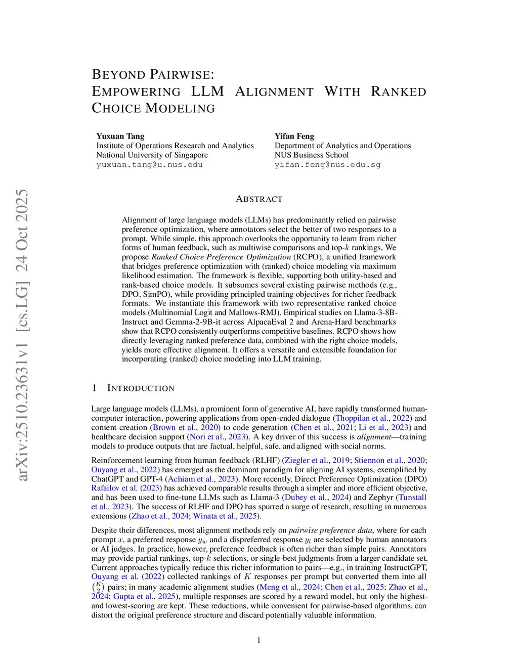 Alignment of large language models (LLMs) has predominantly relied on pairwise preference optimization, where annotators select the better of two responses to a prompt. While simple, this approach overlooks the opportunity to learn from richer forms of human feedback, such as multiway comparisons and top- rankings. We introduce Ranked Choice Preference Optimization (RCPO), a unified framework that bridges preference optimization with (ranked) choice modeling via maximum likelihood estimation. RCPO supports both utility-based and rank-based models, subsumes several pairwise methods (such as DPO and SimPO) as special cases, and provides principled training objectives for richer feedback formats. We instantiate this framework with two representative models (Multinomial Logit and Mallows-RMJ). Experiments on Llama-3-8B-Instruct, Gemma-2-9B-it, and Mistral-7B-Instruct across in-distribution and out-of-distribution settings show that RCPO consistently outperforms competitive baselines. RCPO shows that directly leveraging ranked preference data, combined with the right choice models, yields more effective alignment. It offers an extensible foundation for incorporating (ranked) choice modeling into LLM training.