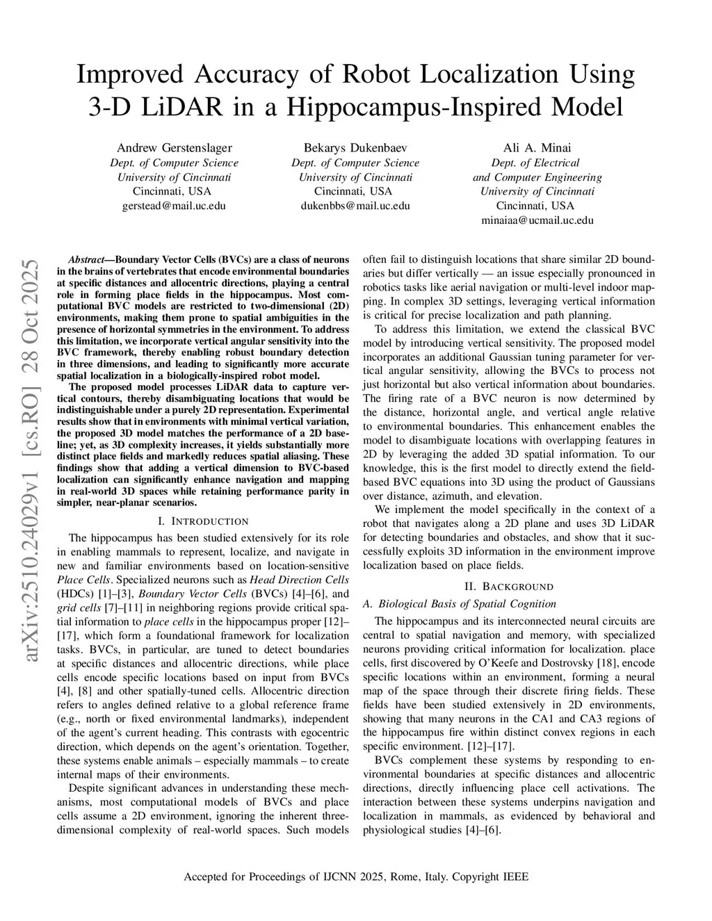 Improved Accuracy of Robot Localization Using 3-D LiDAR in a Hippocampus-Inspired Model