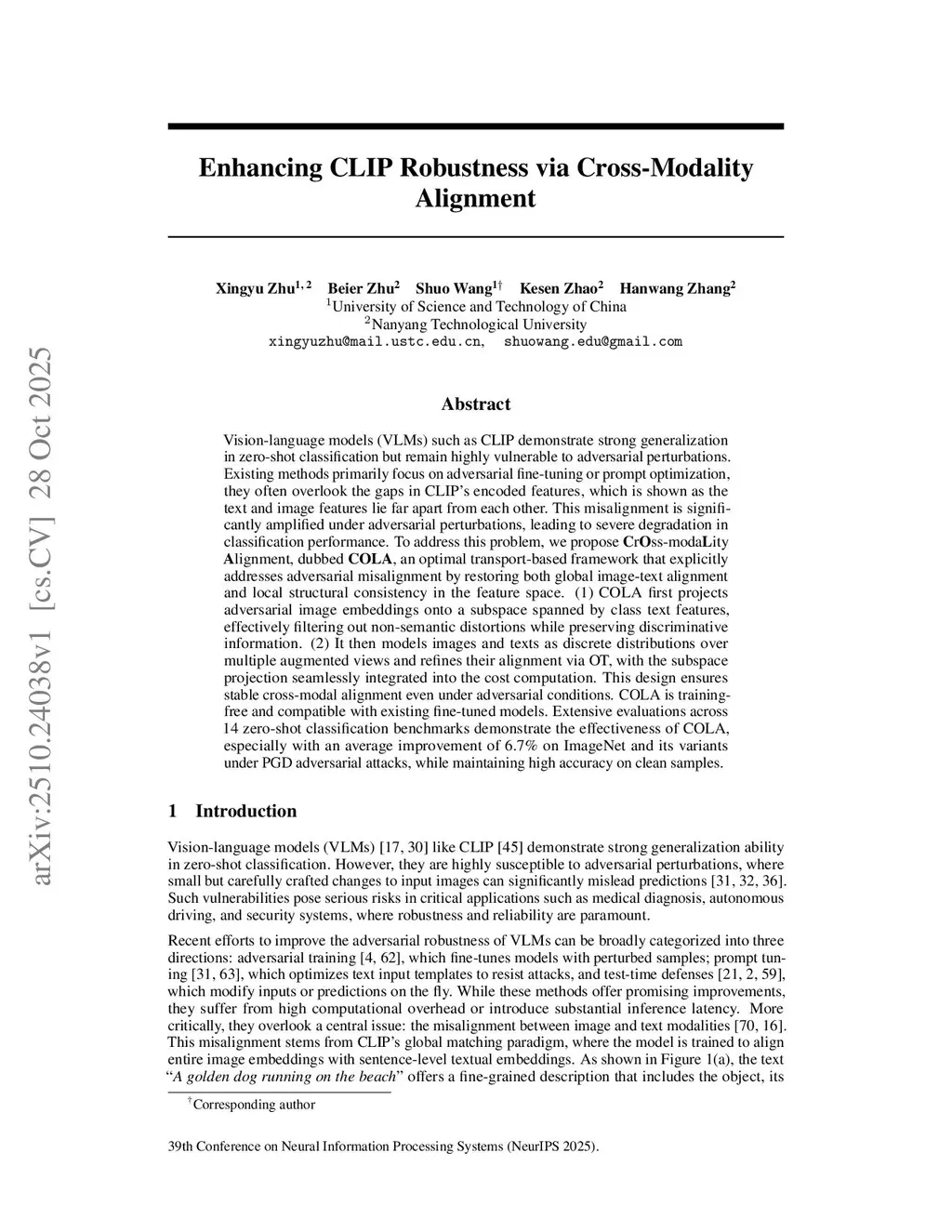 Enhancing CLIP Robustness via Cross-Modality Alignment