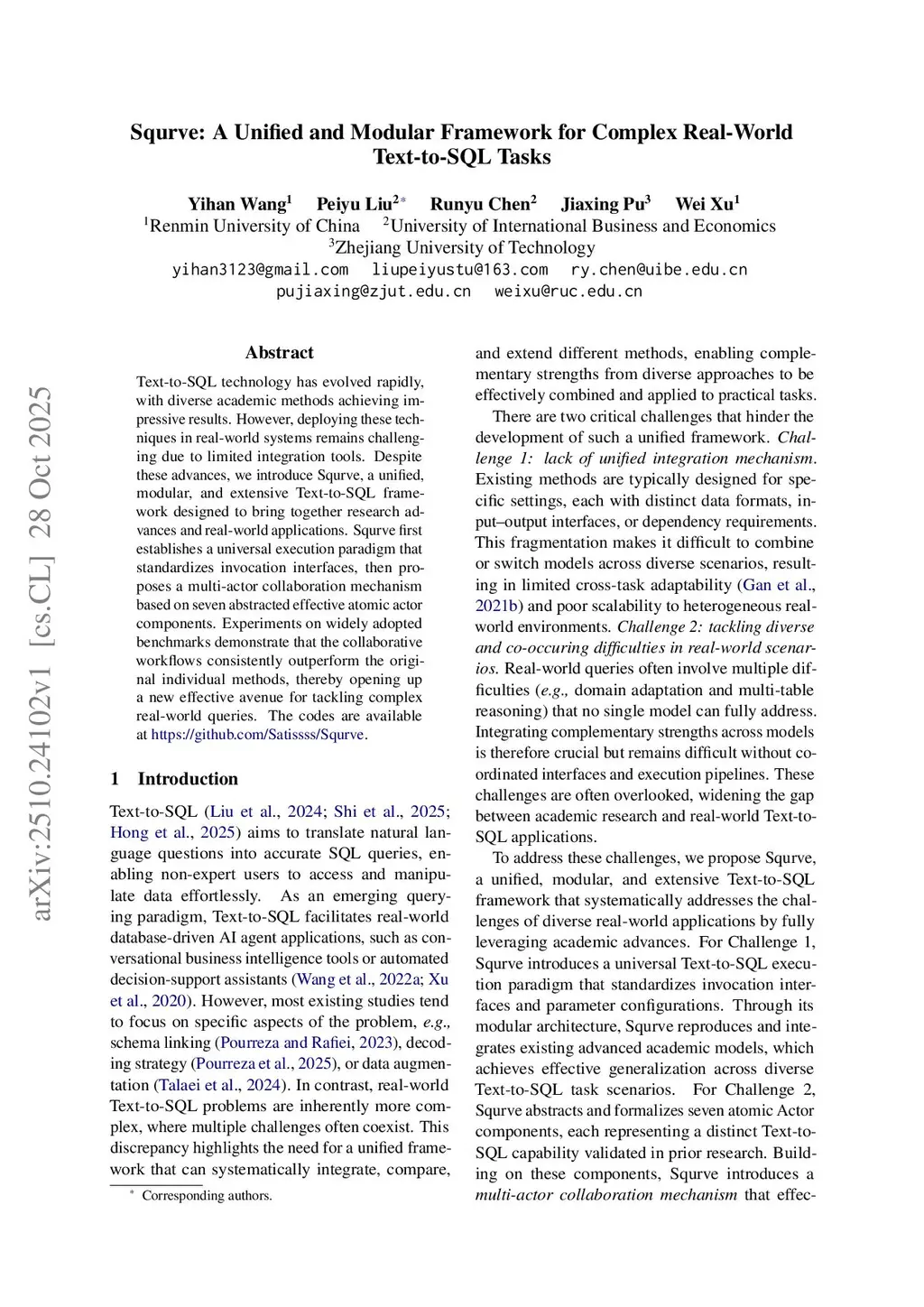 Squrve: A Unified and Modular Framework for Complex Real-World Text-to-SQL Tasks