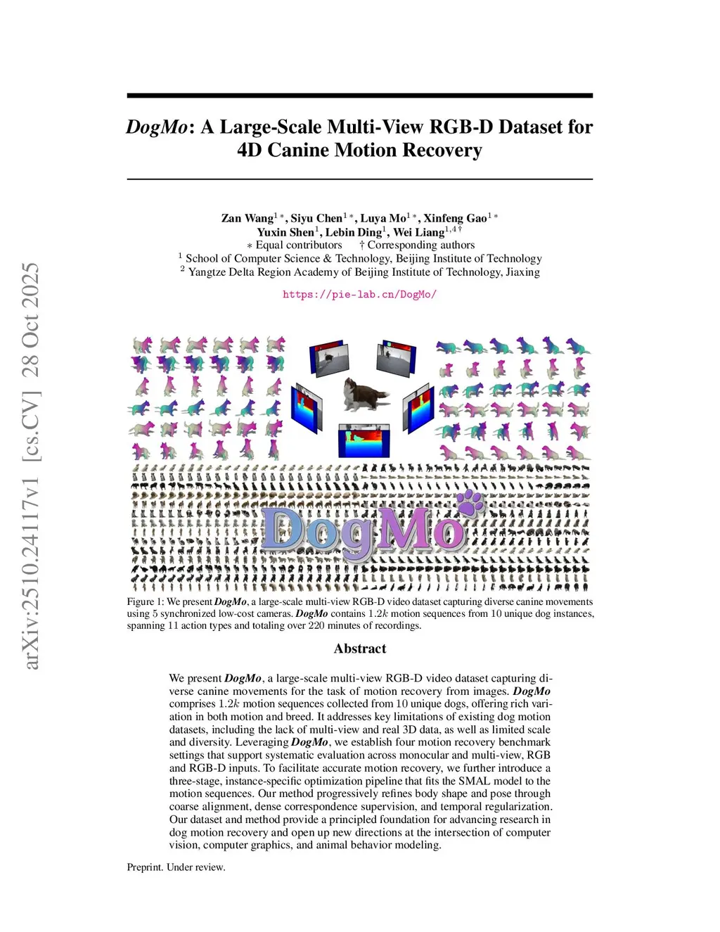 DogMo: A Large-Scale Multi-View RGB-D Dataset for 4D Canine Motion Recovery