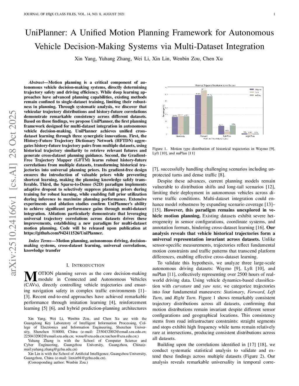 Motion planning is a critical component of autonomous vehicle decision-making systems, directly determining trajectory safety and driving efficiency. While deep learning approaches have advanced planning capabilities, existing methods remain confined to single-dataset training, limiting their robustness in planning.Through systematic analysis, we discover that vehicular trajectory distributions and history-future correlations demonstrate remarkable consistency across different datasets. Based on these findings, we propose UniPlanner, the first planning framework designed for multi-dataset integration in autonomous vehicle decision-making. UniPlanner achieves unified cross-dataset learning through three synergistic innovations.First, the History-Future Trajectory Dictionary Network (HFTDN) aggregates history-future trajectory pairs from multiple datasets, using historical trajectory similarity to retrieve relevant futures and generate cross-dataset planning guidance.Second, the Gradient-Free Trajectory Mapper (GFTM) learns robust history-future correlations from multiple datasets, transforming historical trajectories into universal planning priors. Its gradient-free design ensures the introduction of valuable priors while preventing shortcut learning, making the planning knowledge safely transferable. Third, the Sparse-to-Dense (S2D) paradigm implements adaptive dropout to selectively suppress planning priors during training for robust learning, while enabling full prior utilization during inference to maximize planning performance.