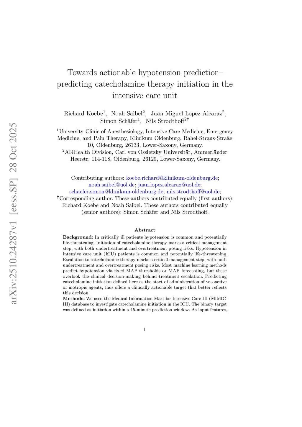 Towards actionable hypotension prediction- predicting catecholamine therapy initiation in the intensive care unit