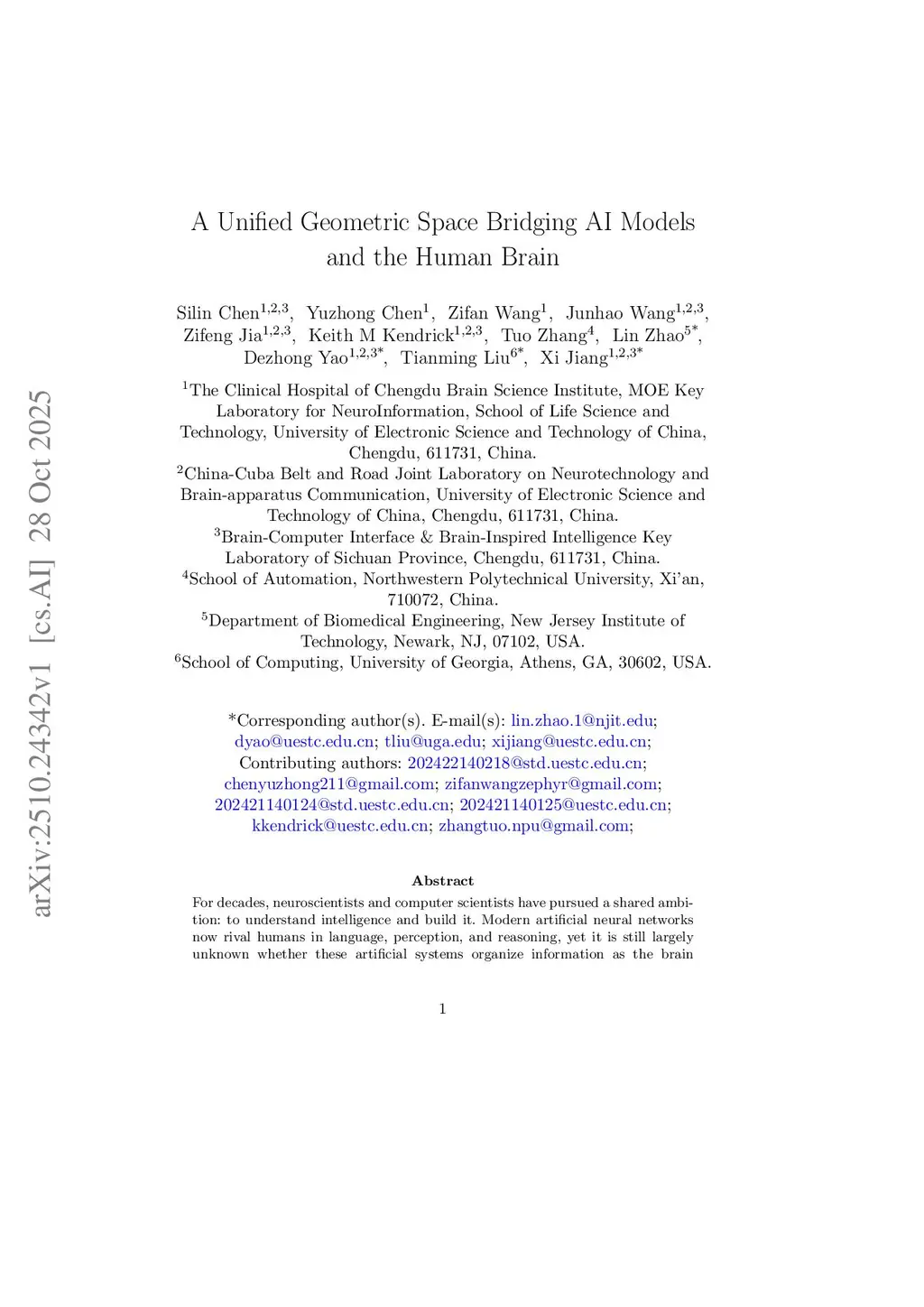 A Unified Geometric Space Bridging AI Models and the Human Brain