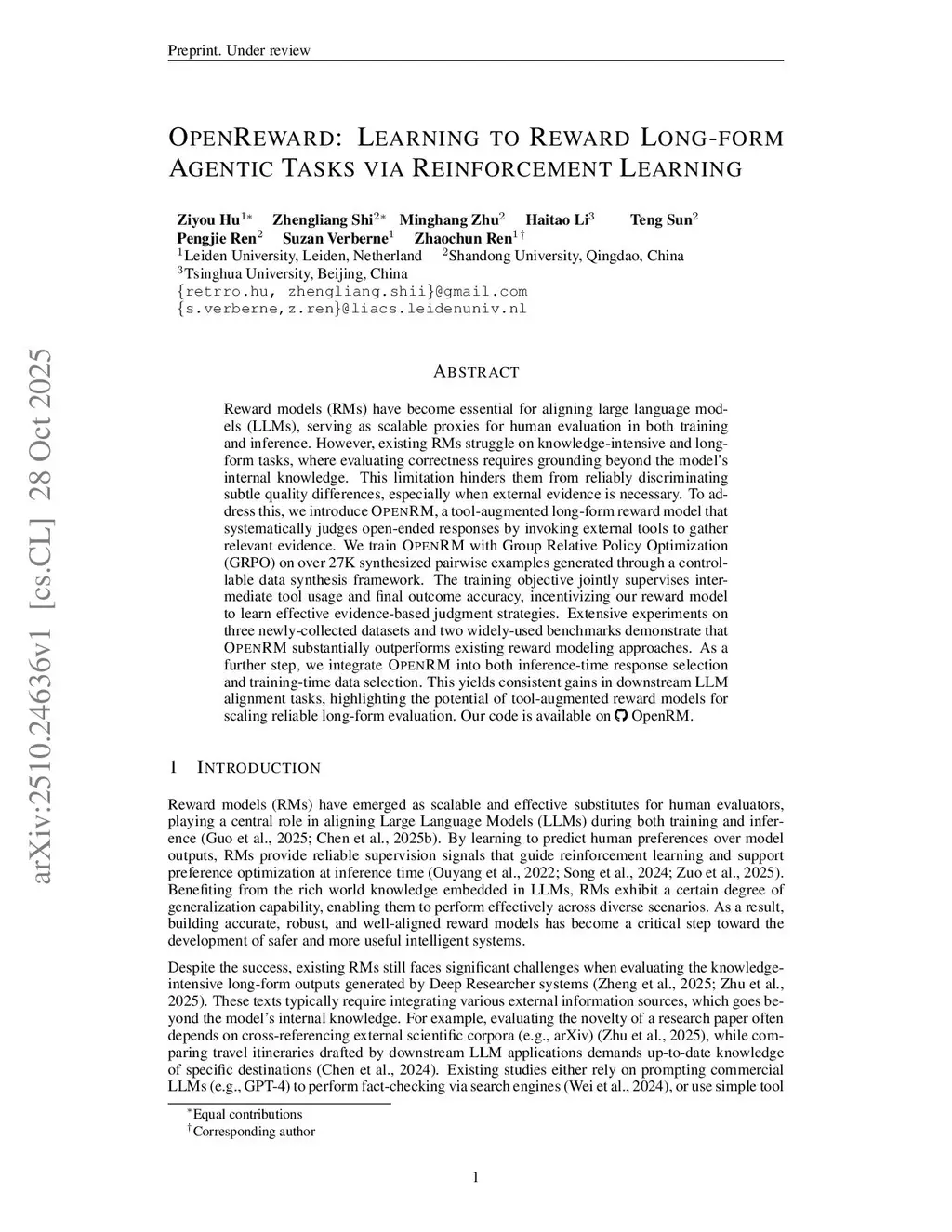 OpenReward: Learning to Reward Long-form Agentic Tasks via Reinforcement Learning