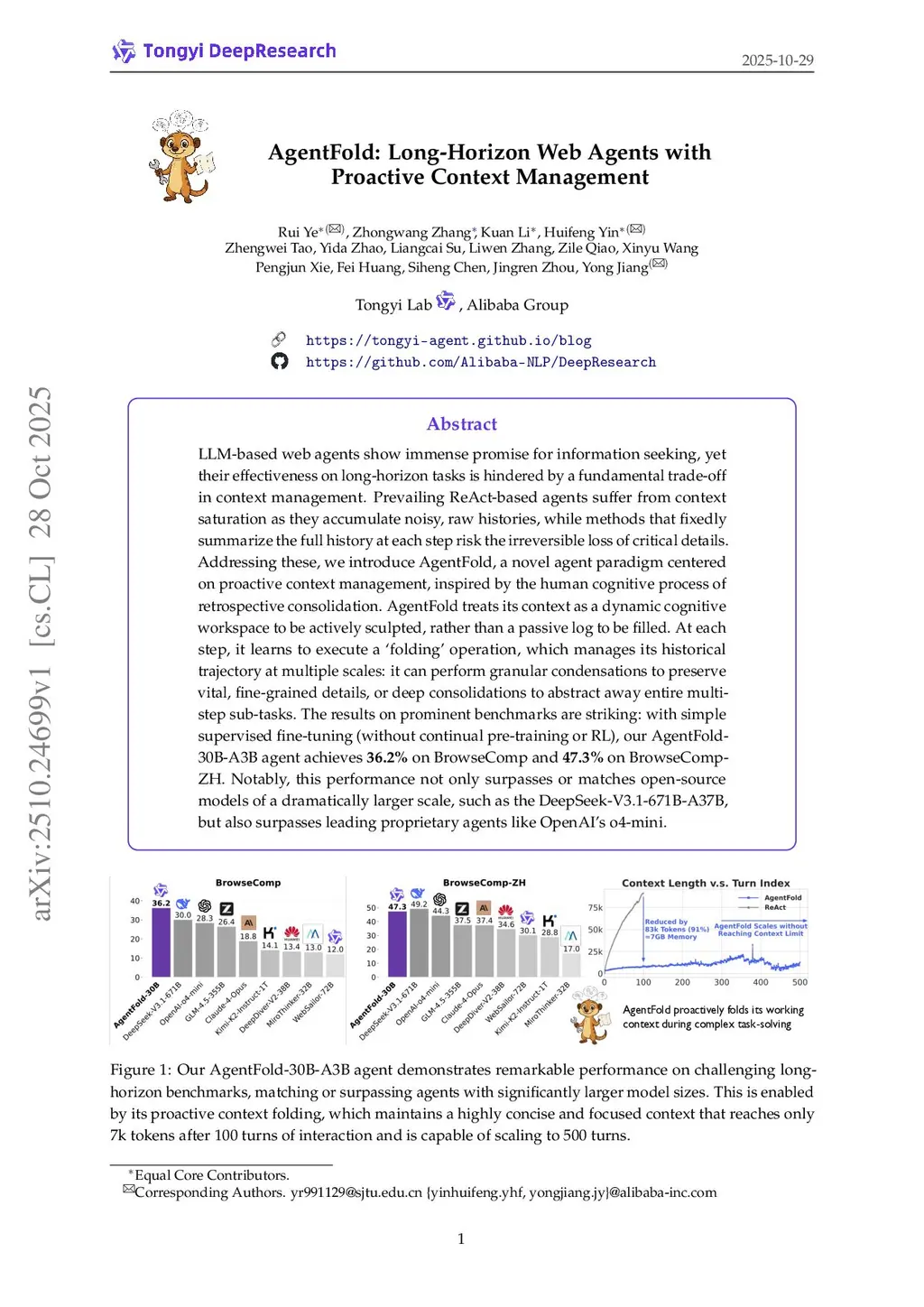 AgentFold: Long-Horizon Web Agents with Proactive Context Management