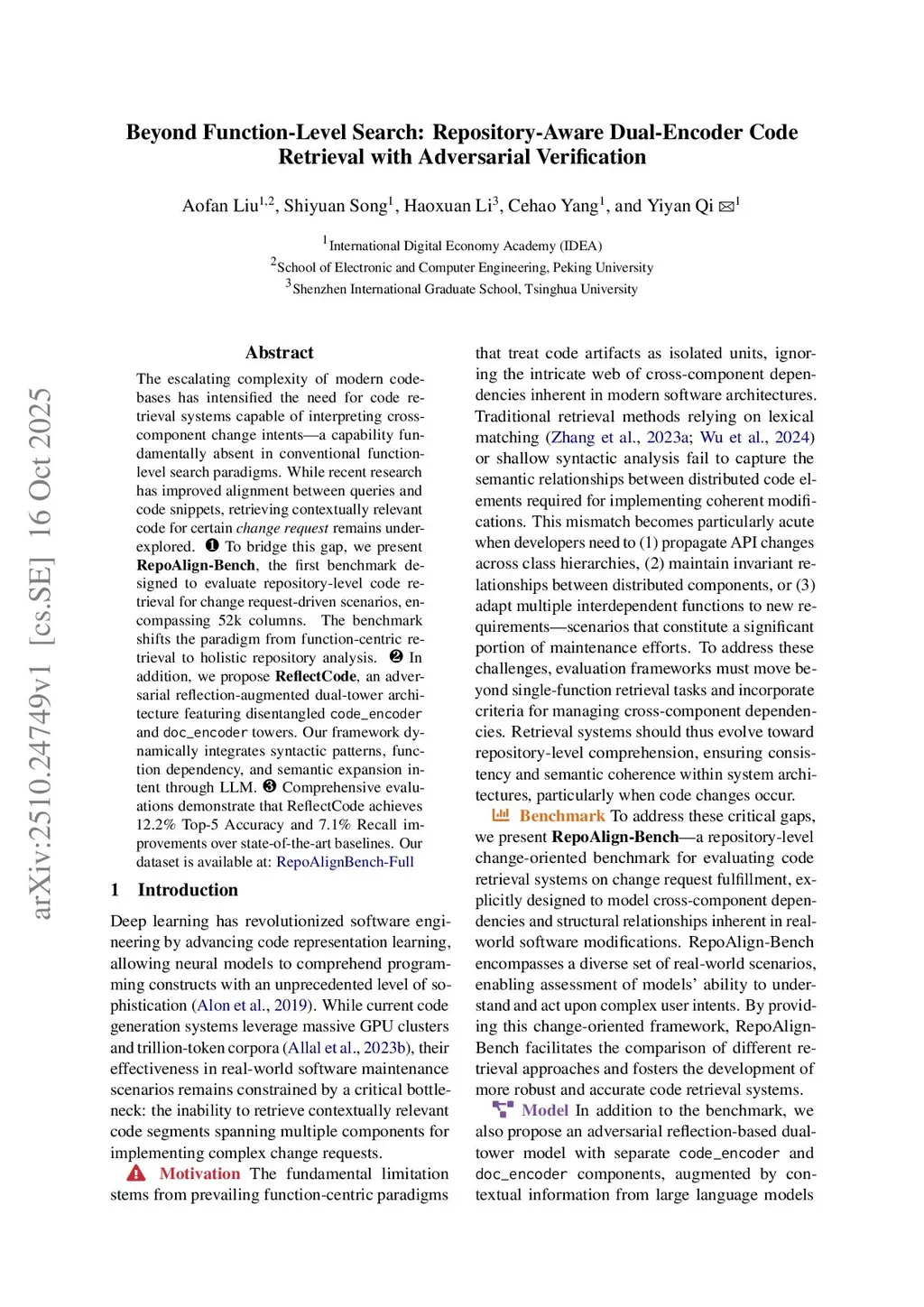 Beyond Function-Level Search: Repository-Aware Dual-Encoder Code Retrieval with Adversarial Verification