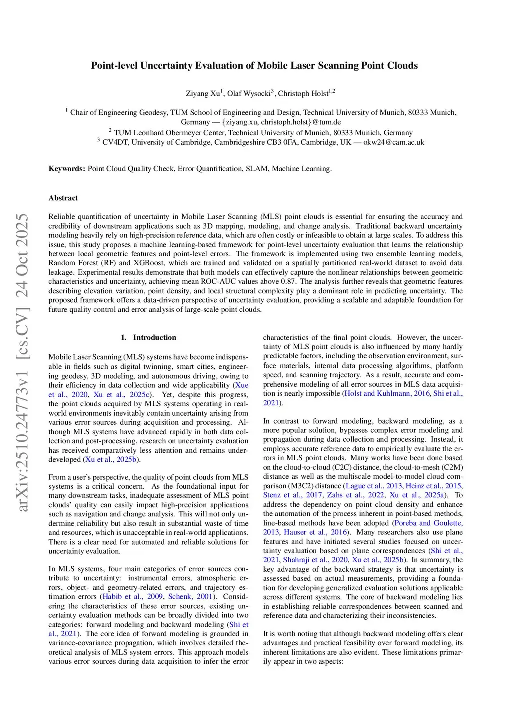 Reliable quantification of uncertainty in Mobile Laser Scanning (MLS) point clouds is essential for ensuring the accuracy and credibility of downstream applications such as 3D mapping, modeling, and change analysis. Traditional backward uncertainty modeling heavily rely on high-precision reference data, which are often costly or infeasible to obtain at large scales. To address this issue, this study proposes a machine learning-based framework for point-level uncertainty evaluation that learns the relationship between local geometric features and point-level errors. The framework is implemented using two ensemble learning models, Random Forest (RF) and XGBoost, which are trained and validated on a spatially partitioned real-world dataset to avoid data leakage. Experimental results demonstrate that both models can effectively capture the nonlinear relationships between geometric characteristics and uncertainty, achieving mean ROC-AUC values above 0.87. The analysis further reveals that geometric features describing elevation variation, point density, and local structural complexity play a dominant role in predicting uncertainty. The proposed framework offers a data-driven perspective of uncertainty evaluation, providing a scalable and adaptable foundation for future quality control and error analysis of large-scale point clouds.