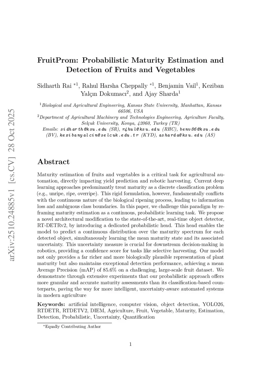 FruitProm: Probabilistic Maturity Estimation and Detection of Fruits and Vegetables