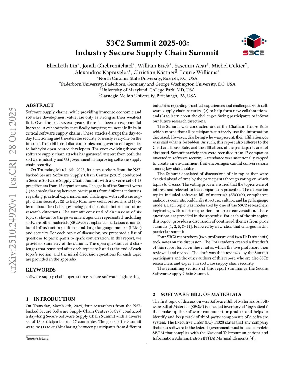 S3C2 Summit 2025-03: Industry Secure Supply Chain Summit